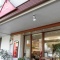変わった形のお店に、木目と緑の木々達が特徴的なケーキ屋さん♪