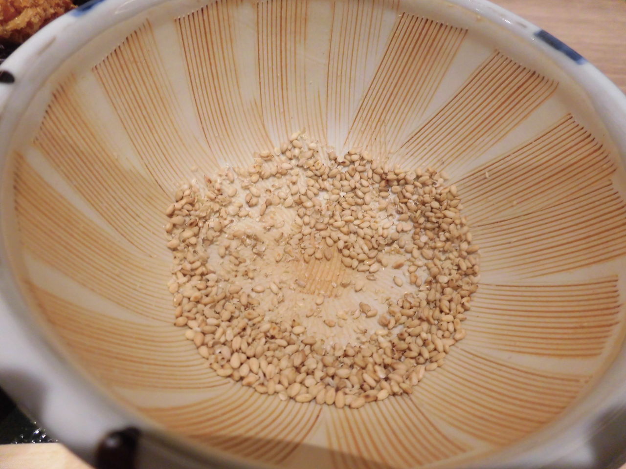 こちらのお店のとんかつソースは、自分でごまをすってからソースを加える方式なのですが