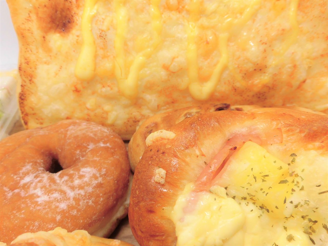 ふんわりとしたパンにハムとチーズのトッピング♪