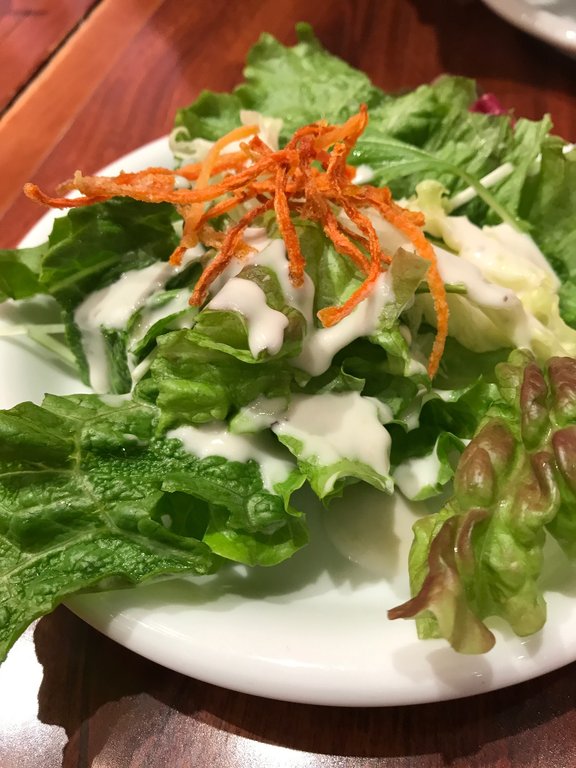 サラダは柔らか目のタイプのレタス系のお野菜で