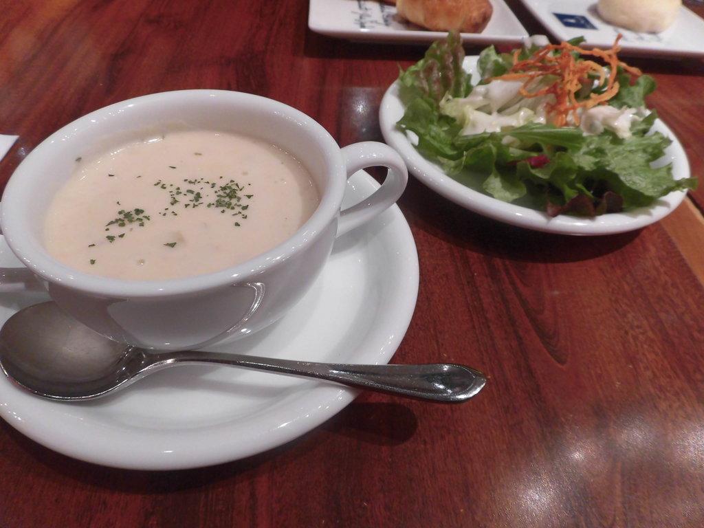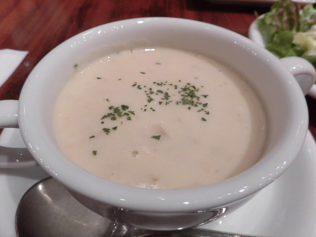 クラムチャウダーもしっかり具材が入ってておいしかった♪