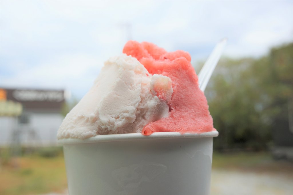 少し酸っぱめのシャーベットと、まろやかなイチゴミルク♪