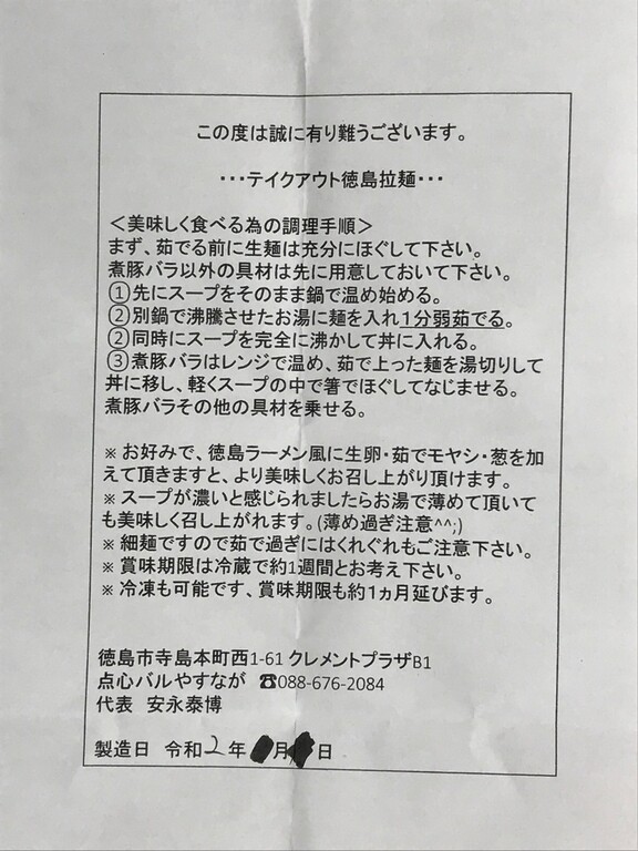 徳島拉麺のテイクアウトは冷凍タイプ♪