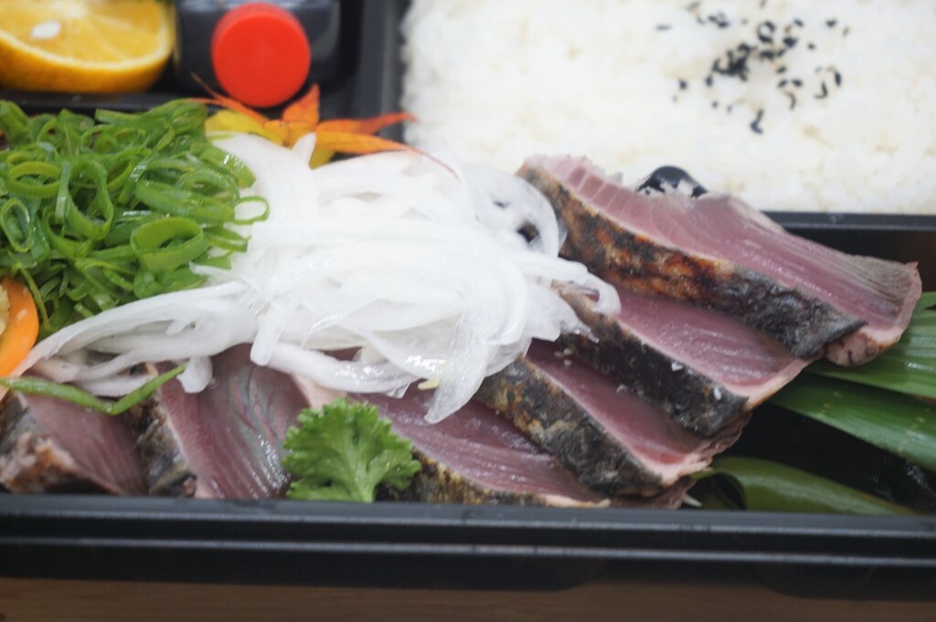 大ぶりの鰹のたたきがたっぷり乗った鰹のたたき弁当♪