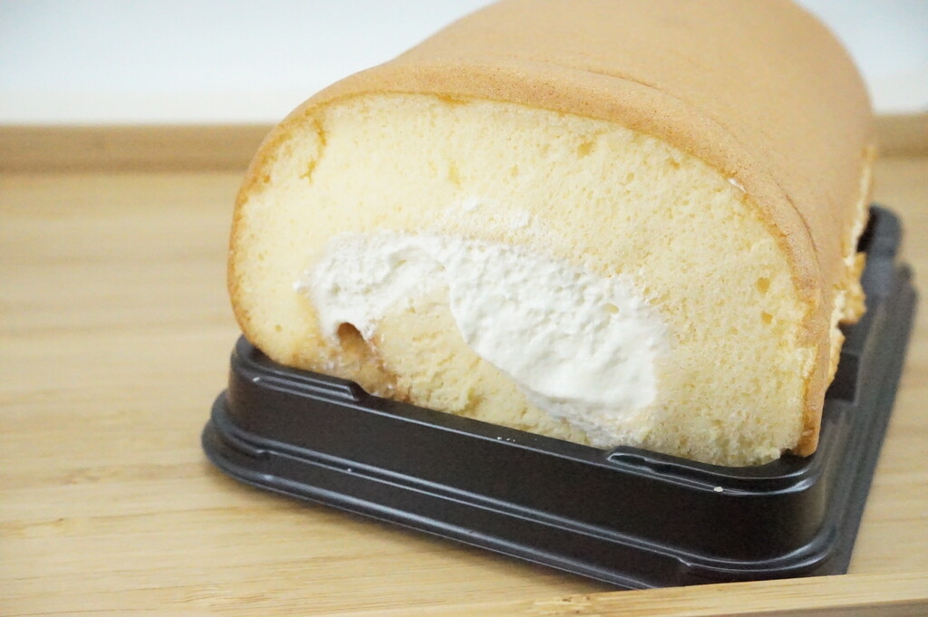 大きなロールケーキで容器からはみ出しそうな勢いと重さ♪