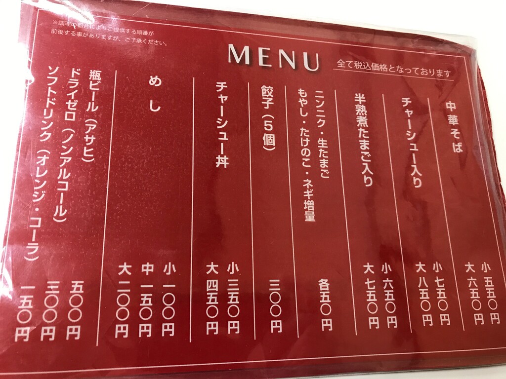 メニューはこんな感じで中華そば、餃子、チャーシュー丼と