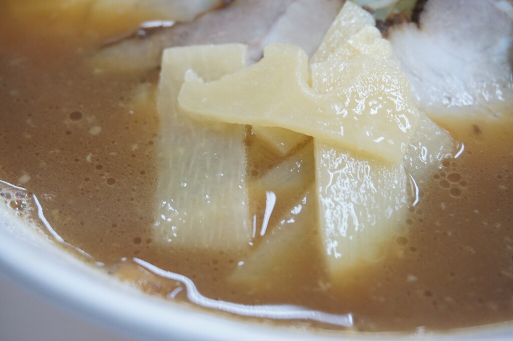 茶系の旨味の強い滑らかな口当たりのいいスープに