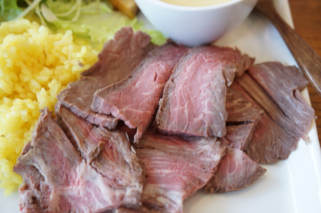 ニンニクのよく効いたローストビーフの組み合わせが
