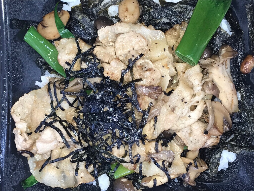 少しスパイシーに炒めたたっぷりのお肉と、ネギ、エリンギとたっぷりの刻み海苔