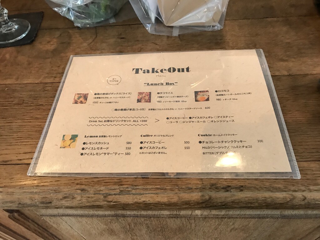 少し見えにくいですけどテイクアウトメニューはこんな感じで