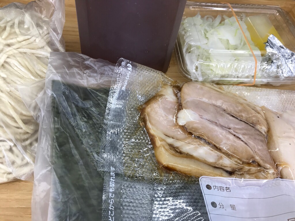 チャーシューは2種類まとめて入っていたので、