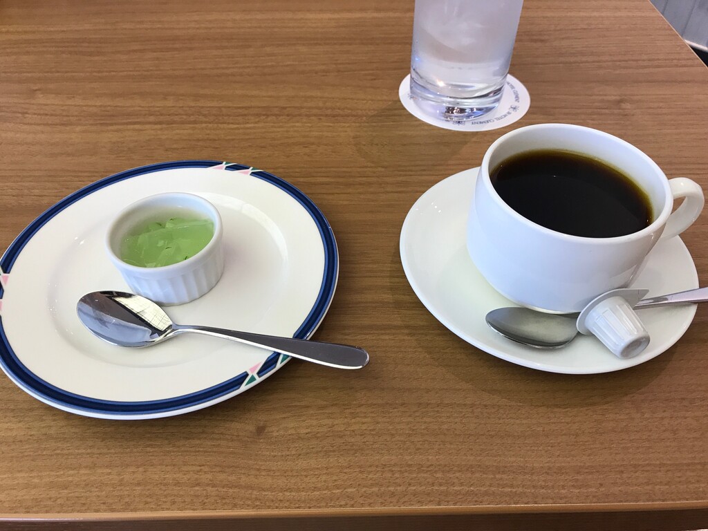 ステーキ焼いて頂いている間に、お冷と、珈琲、すだちゼリーなんかを出して頂きました