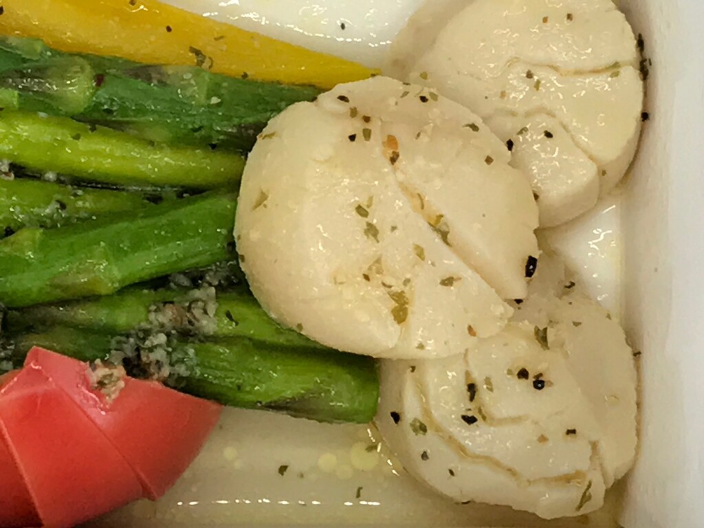 いい焼き加減のホタテと、香りと食感のアスパラ