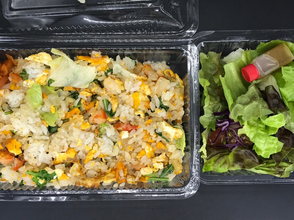 エビフライ、サラダ、副菜、ごはんのお弁当♪