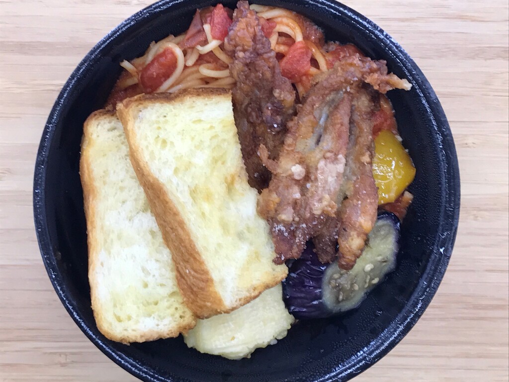 本日のパスタ(チキンとカマンベールのフリットのせ)♪