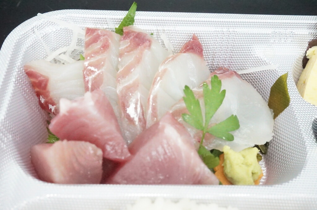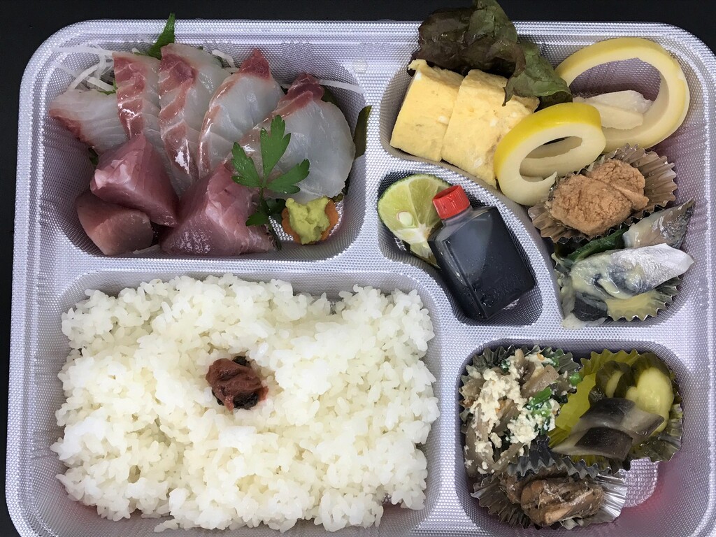 お刺身盛り合わせ、副菜、ライスのお弁当♪