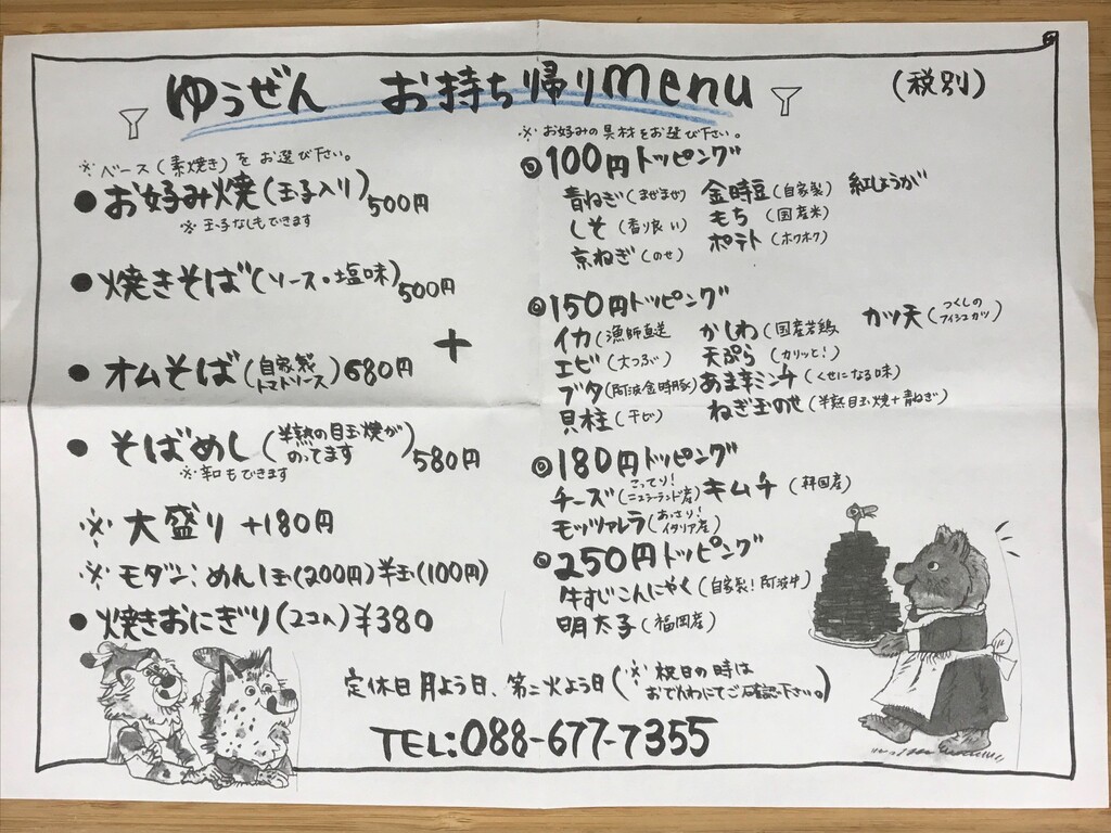 テイクアウトメニューはこんな感じ♪