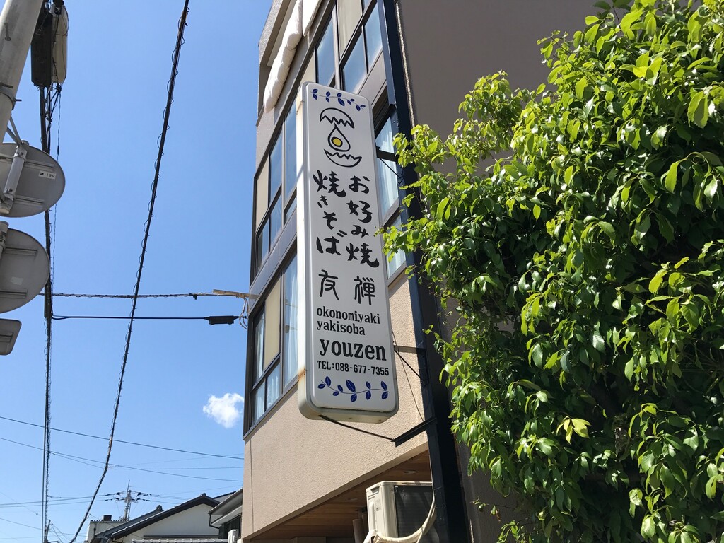 徳島市助任本町付属小学校の程近くにお好み焼きゆうぜんさんがあります♪なんかオリエンタルというか不思議な店構えのお店ですね♪