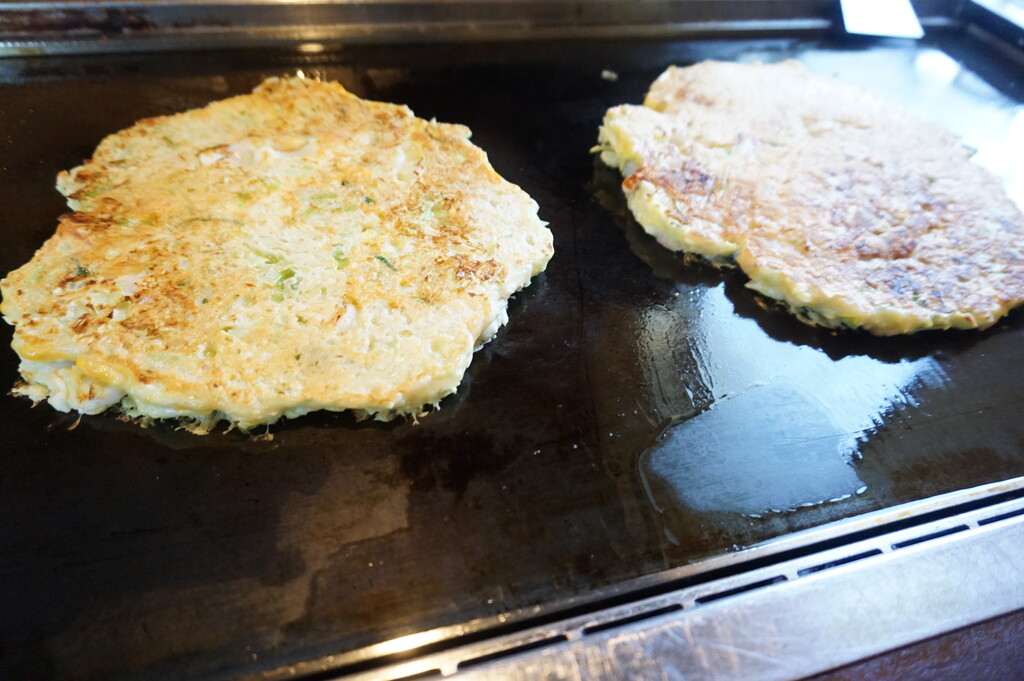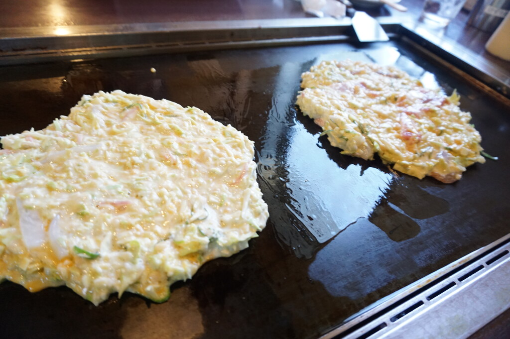 鉄板に流し込んで♪