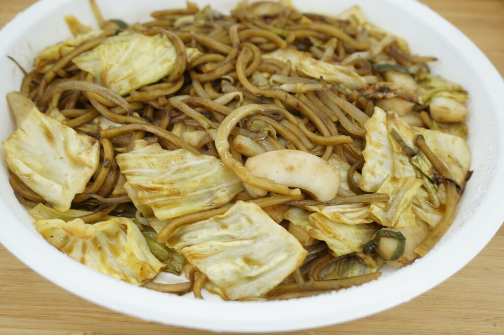ホルモンたっぷり少し辛めのソースと、太めの麺でもっちもちの焼きそば