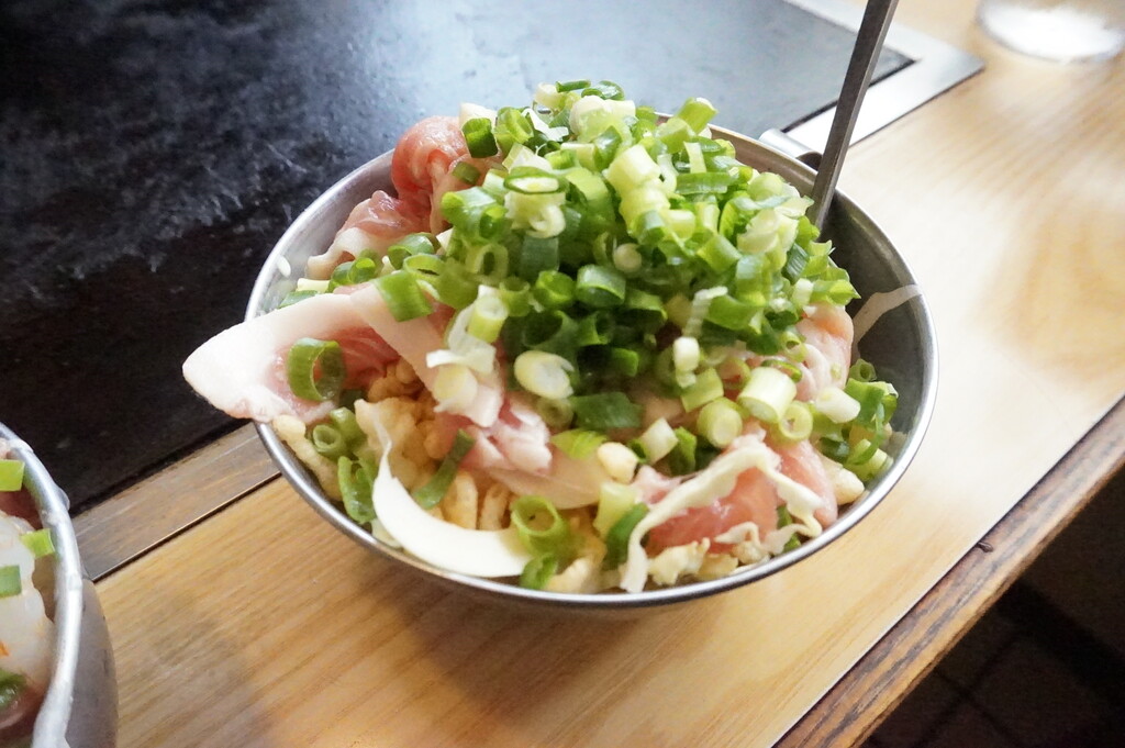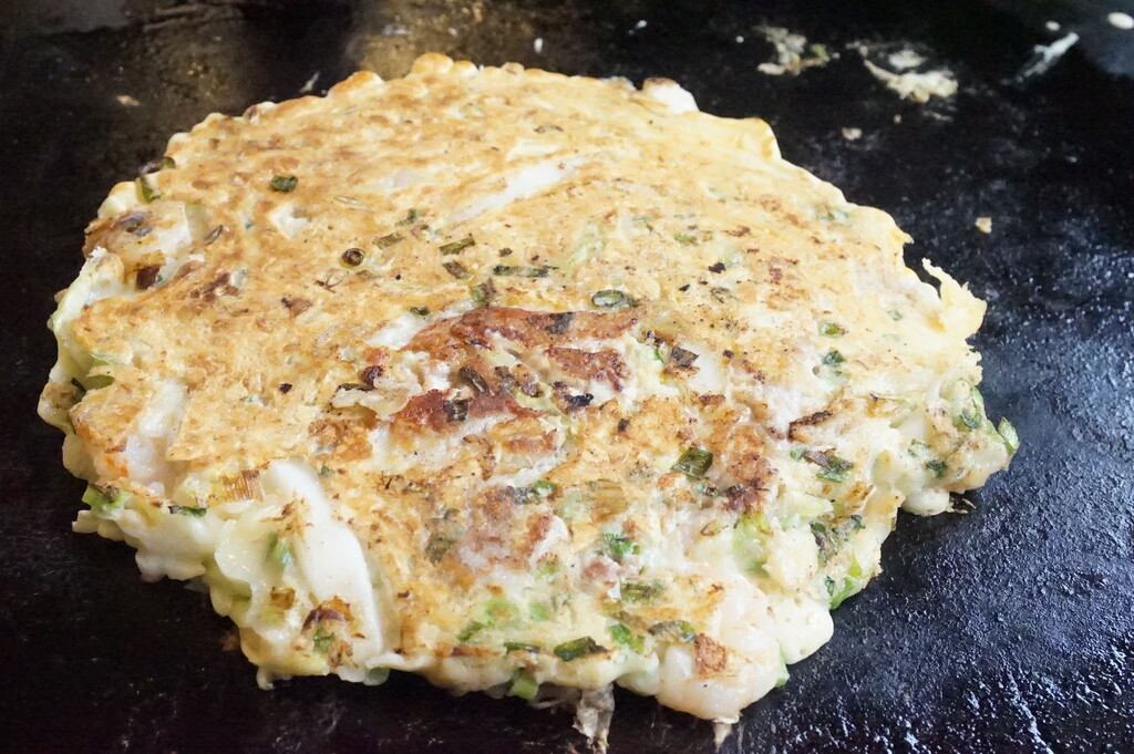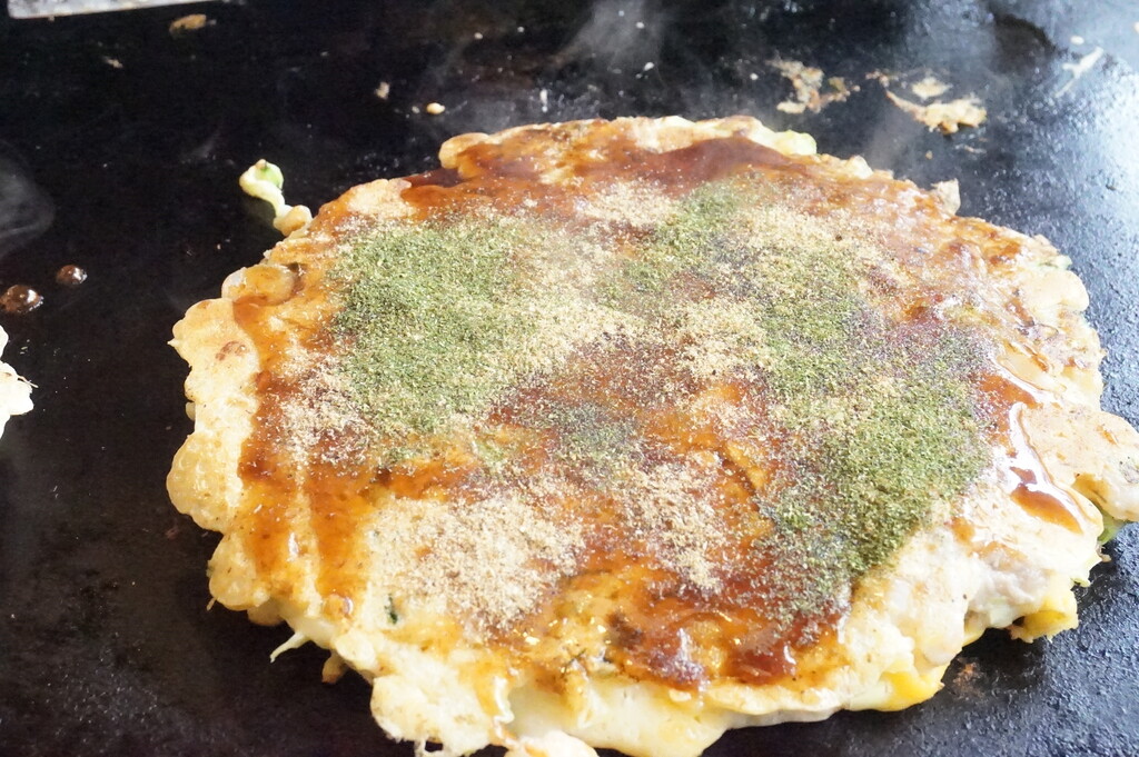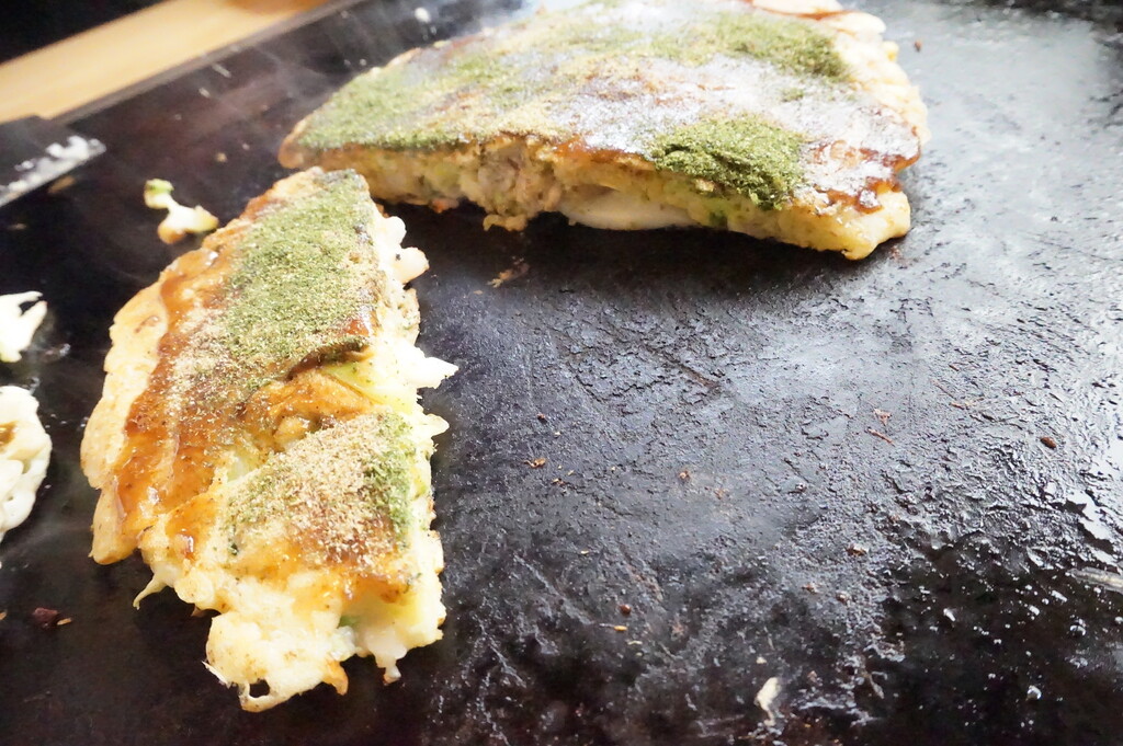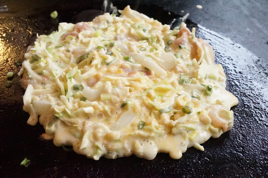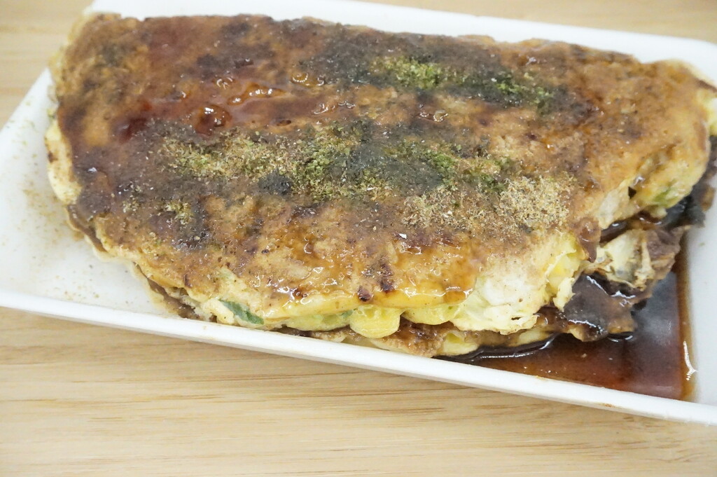 薄めのむっちり詰まった感じのお好み焼き(*´▽`*)