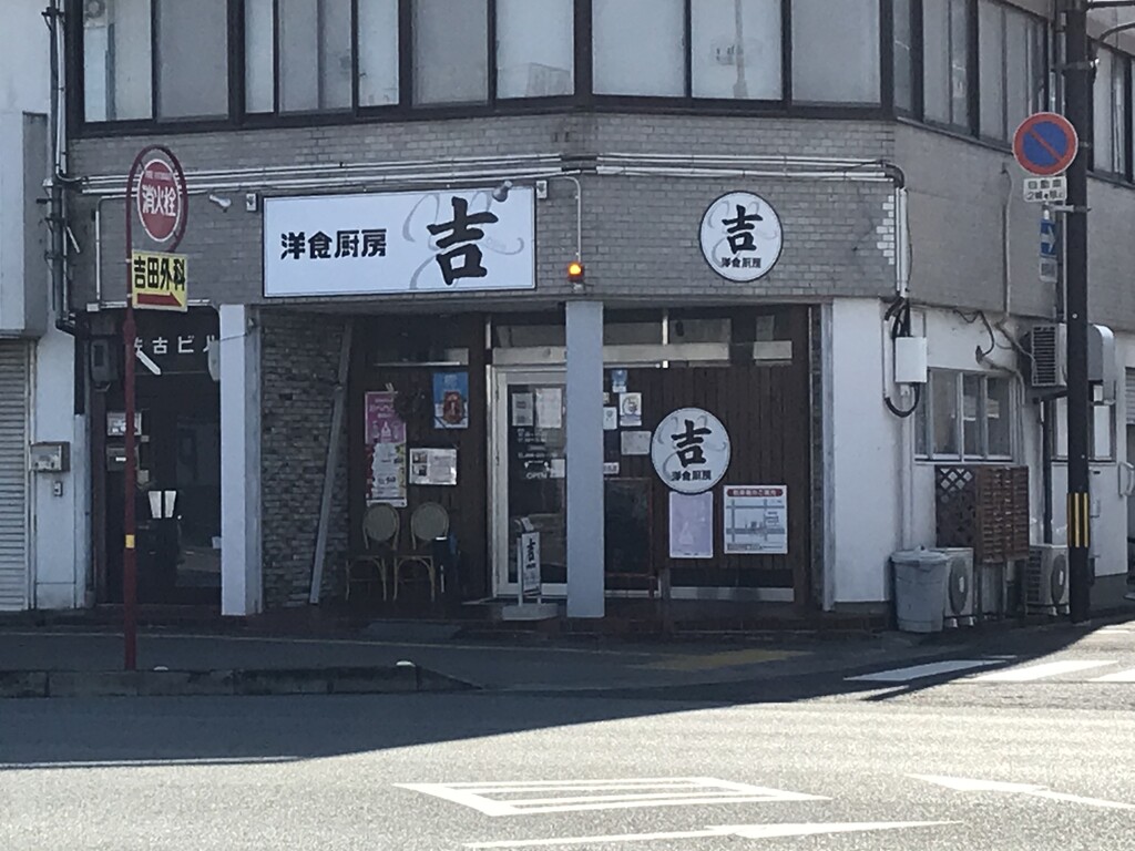 徳島市佐古町国道沿いに洋食厨房吉さんがあります♪レトロモダンな味わいのある外観のお店♪