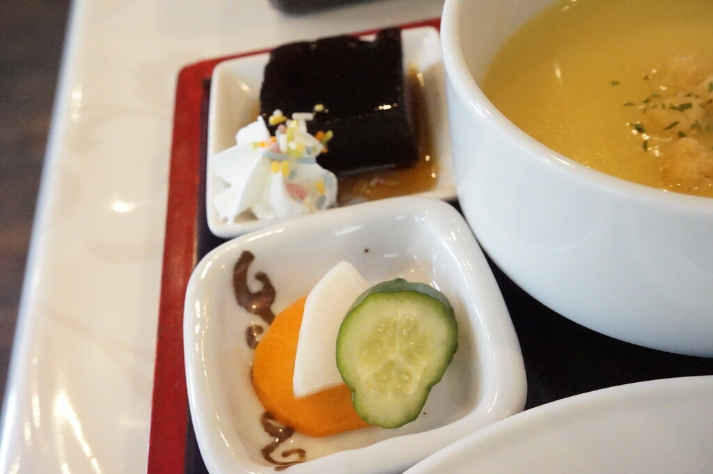 お漬物と、デザートのコーヒーゼリー♪