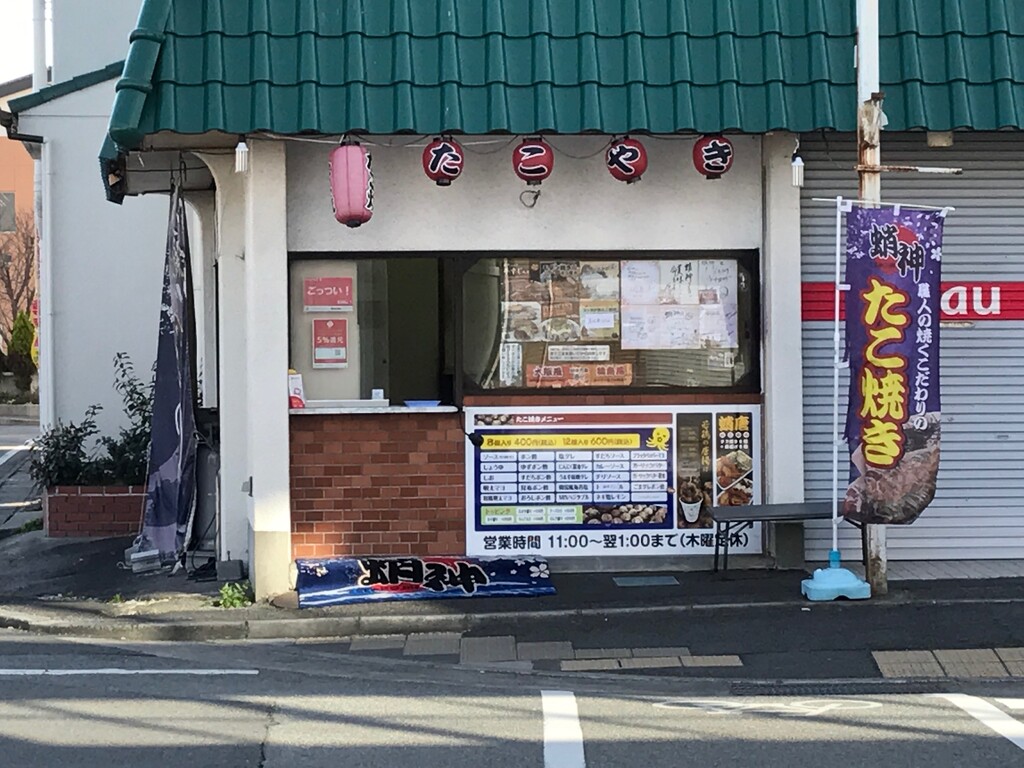 徳島市住吉飲食店が沢山ある街並みの一角にたこ焼き屋さん蛸神さんがあります♪