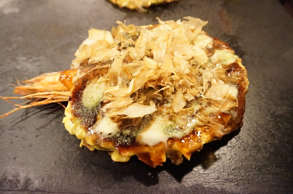 大きな有頭海老の入った粉屋焼き♪