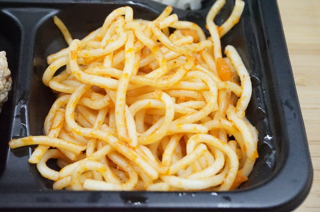から揚げ5個、ポテサラ、ナポリタン、ライスのお弁当♪