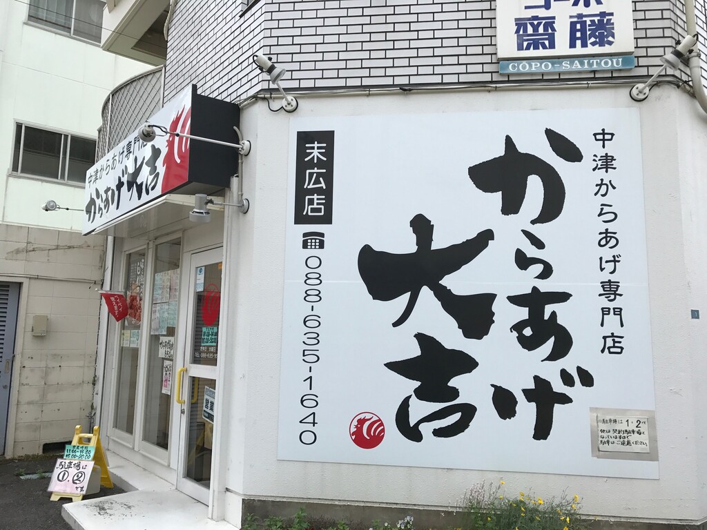 徳島市末広町末広大橋北の降り口から少し西方面に入った場所にから揚げ大吉徳島末広店さんがあります♪