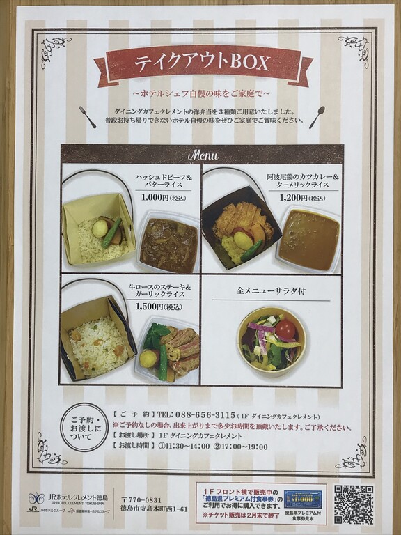 JR徳島駅の徳島クレメントホテル以前は焼き立てステーキ弁当をテイクアウト販売されていたのですけれど