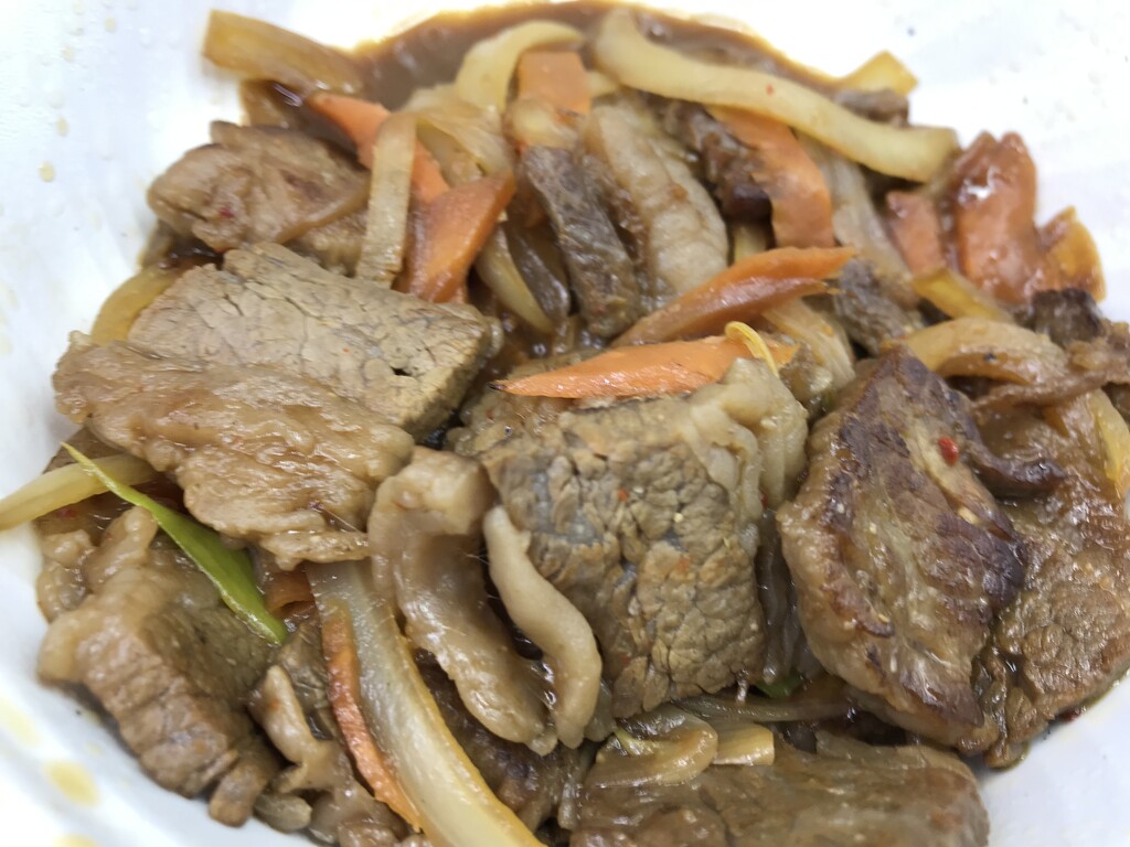 柔らかいお肉とシャッキシャキのお野菜が甘辛いたれで