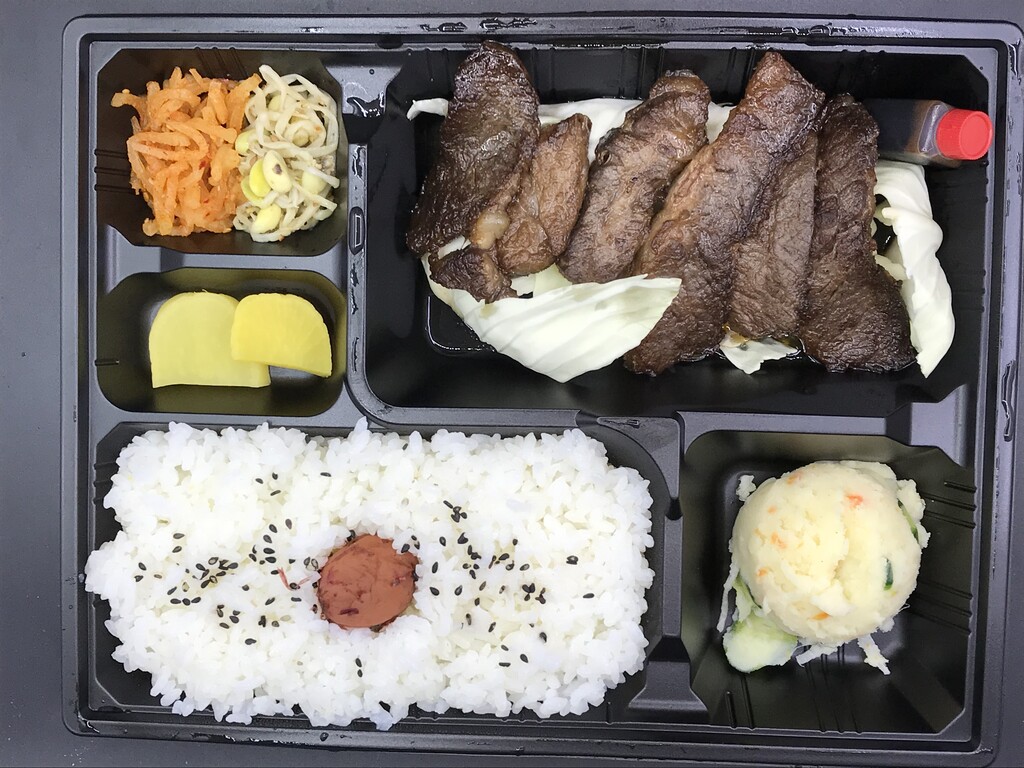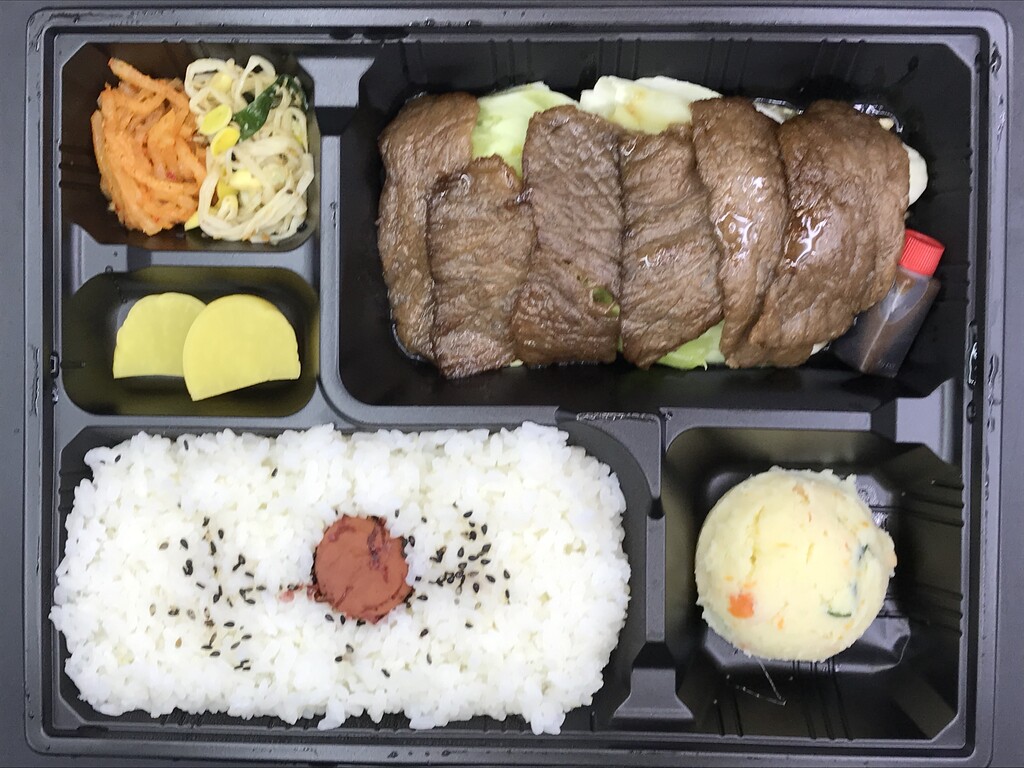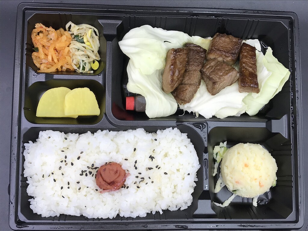 阿波黒牛の特選ハラミ、ポテサラ、ナムル、ライスのお弁当♪