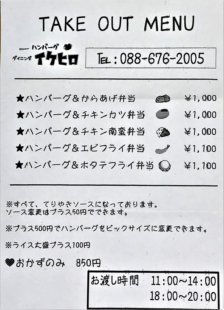 テイクアウトメニューはこんな感じ♪