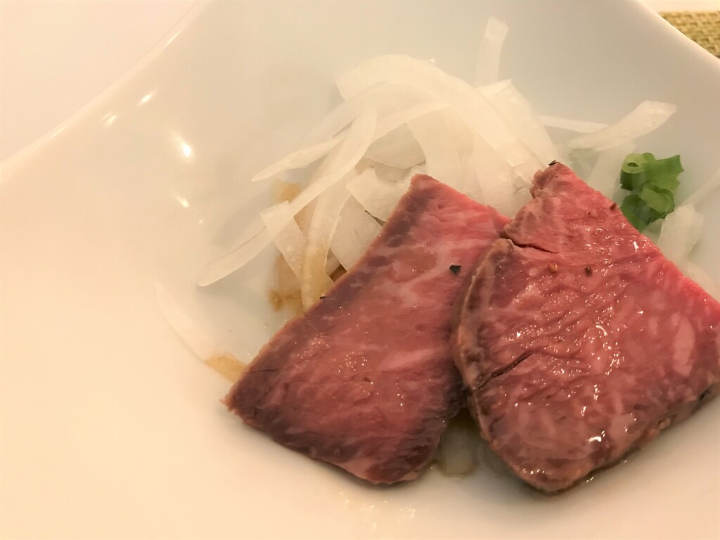 表面はしっかり焼かれてて、中はレア、