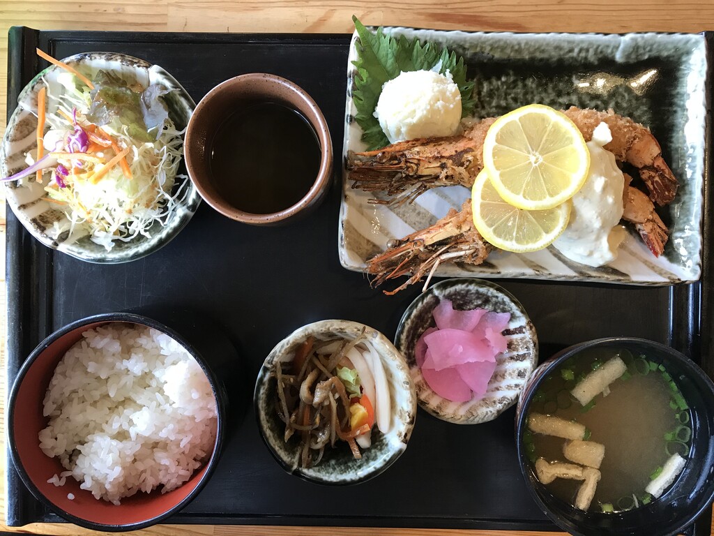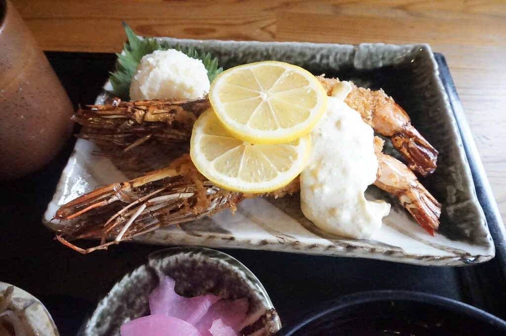 有頭エビフライ2尾がメインの定食♪