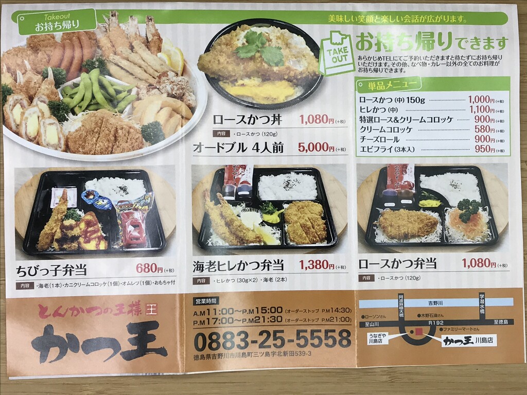 吉野川市川島町のかつ王さんでテイクアウト♪かつ王さんはウナギ料理のうなぎ屋さんが運営する、