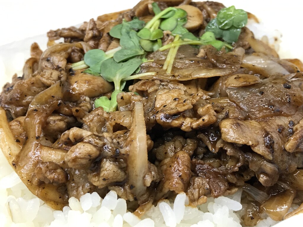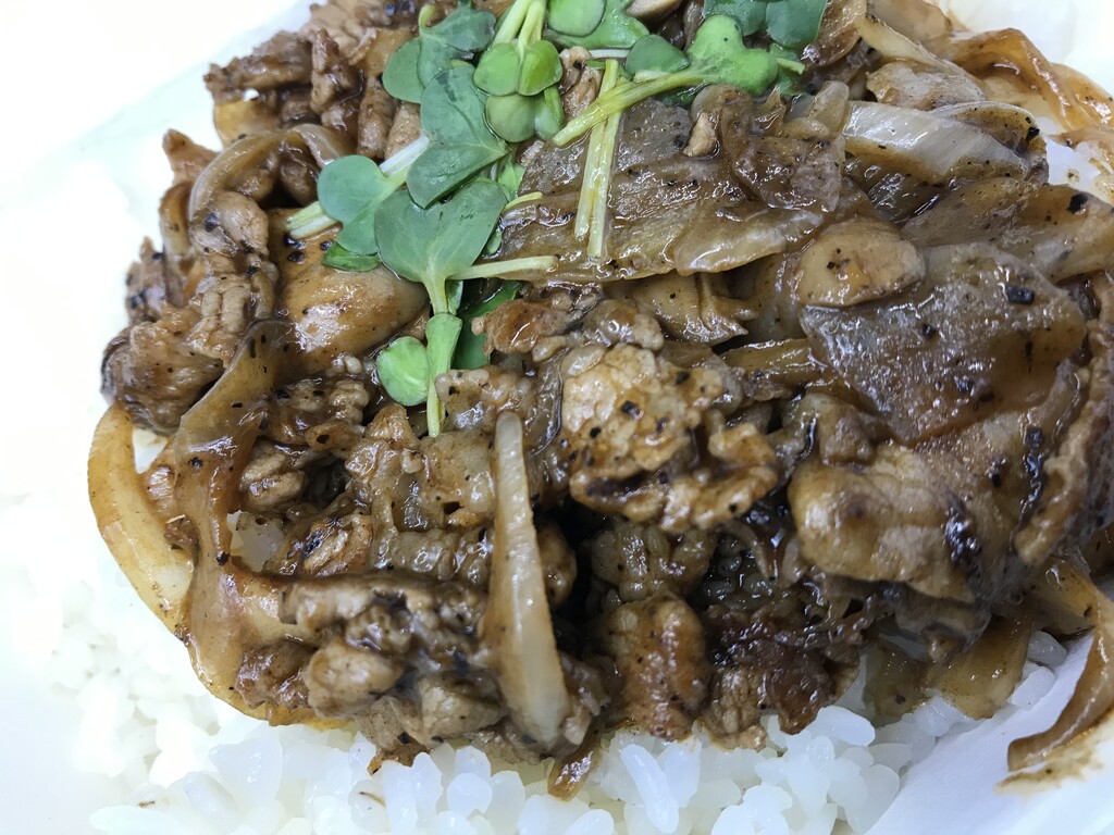 甘辛いたれと、黒コショウの辛味、カイワレの苦みが、