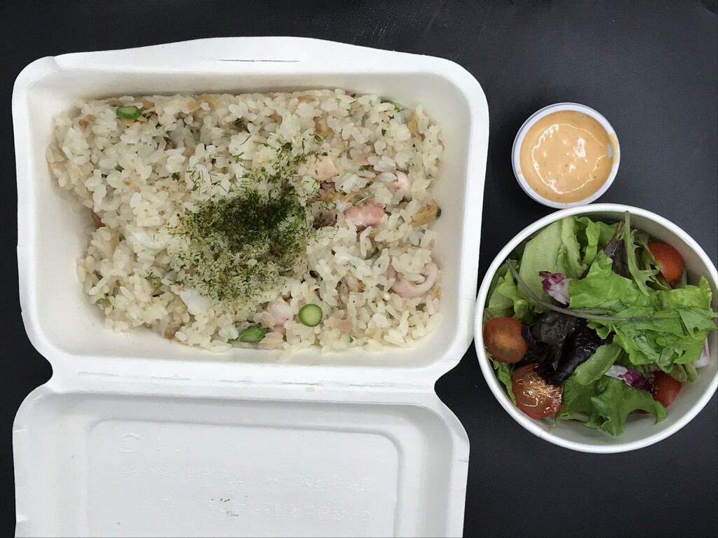 テイクアウトの容器が変更になっています♪スパイスピラフ♪