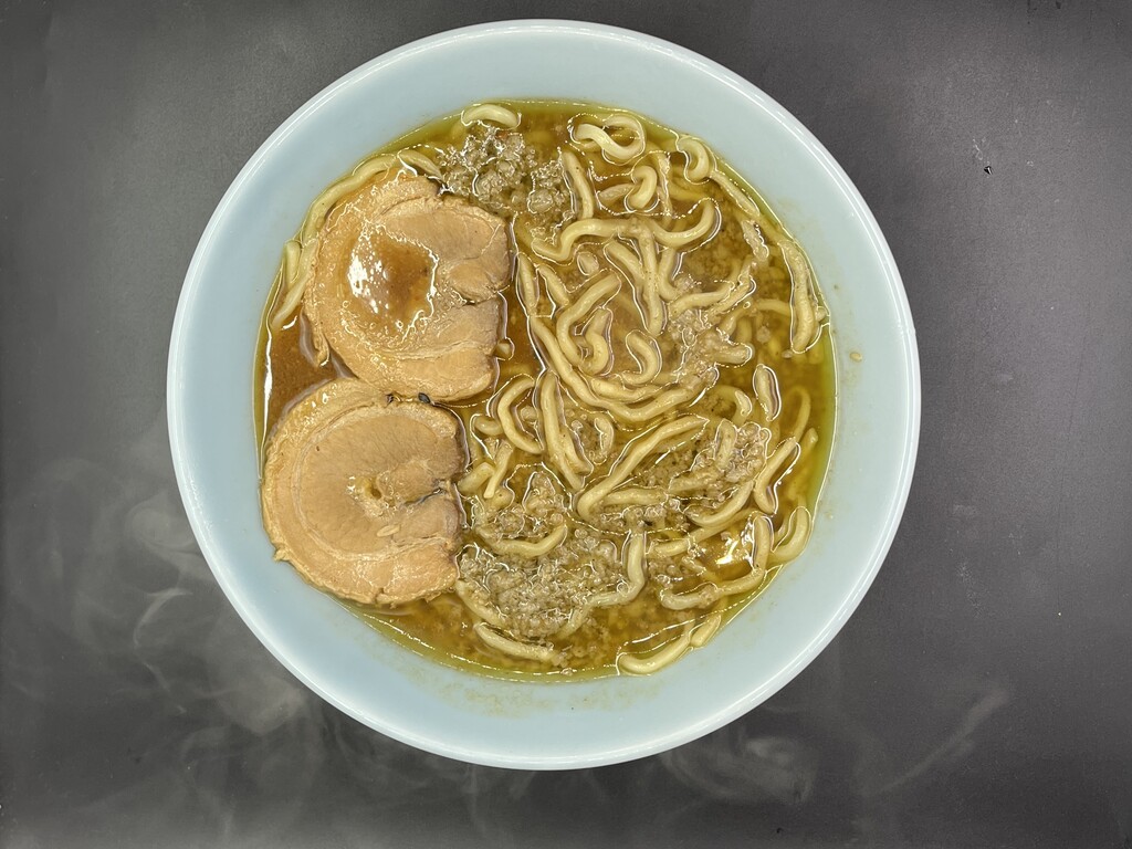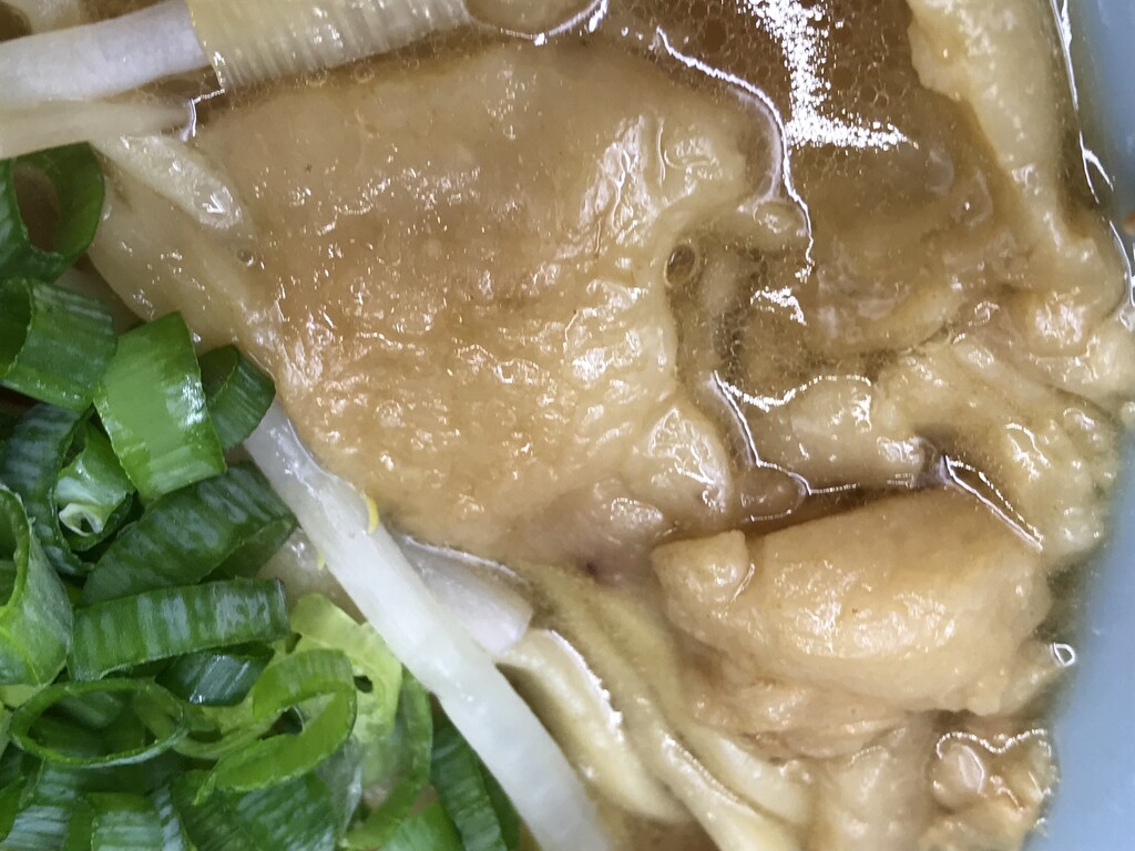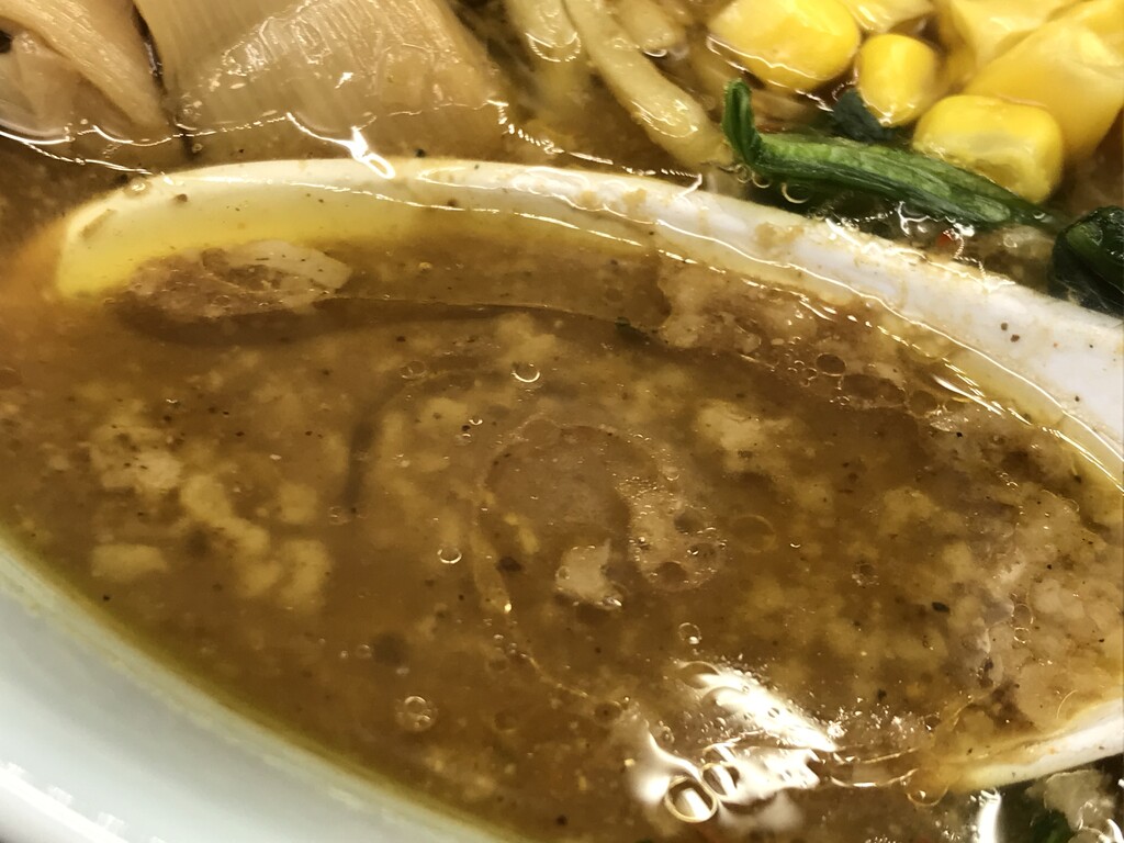 スープは脂の層が少し多めで、濃厚で、