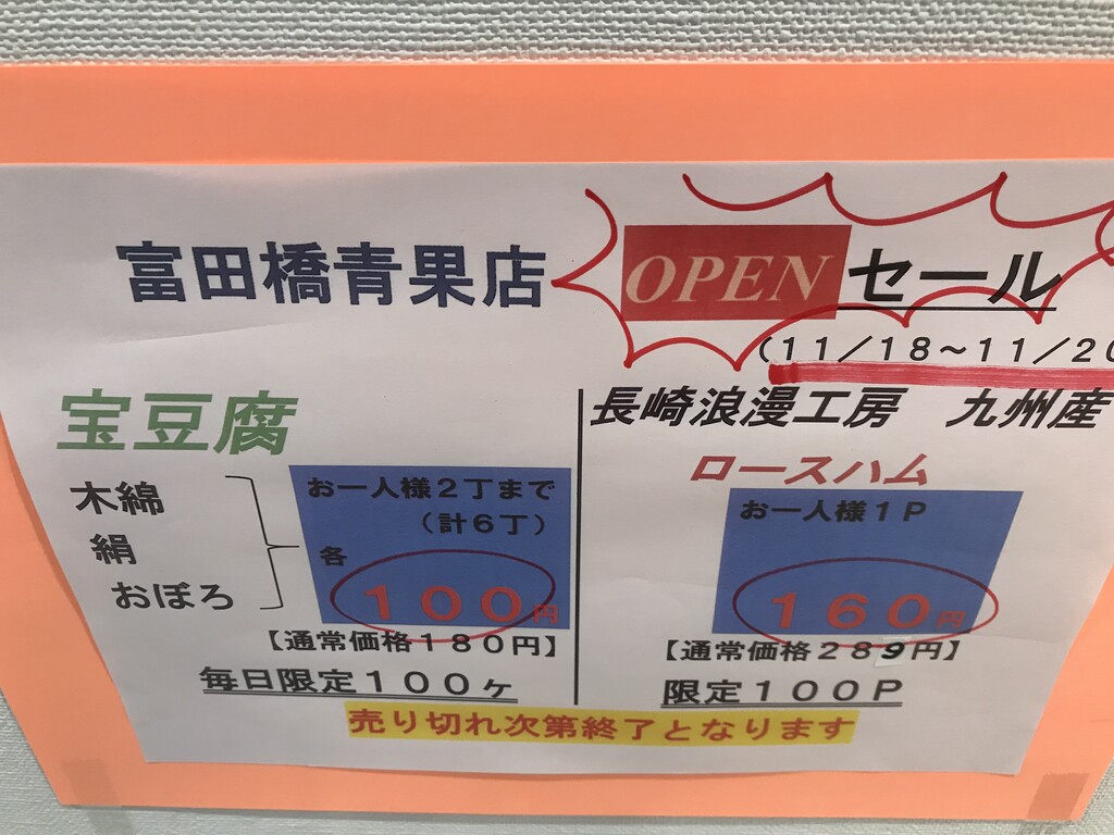 徳島市富田橋、富田小学校近くに、富田橋青果店さんが11月18日オープンされました♪