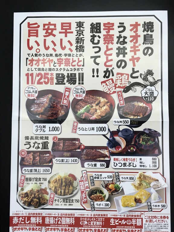 徳島市南田宮の扇屋さんがリブランドをして、ウナギ料理を扱うオオギヤと宇奈とというお名前に変更をされて、