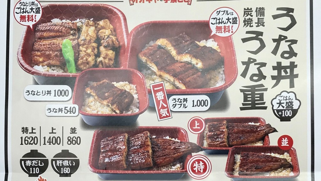 基本的にはうな丼、うな重、お汁ものと、