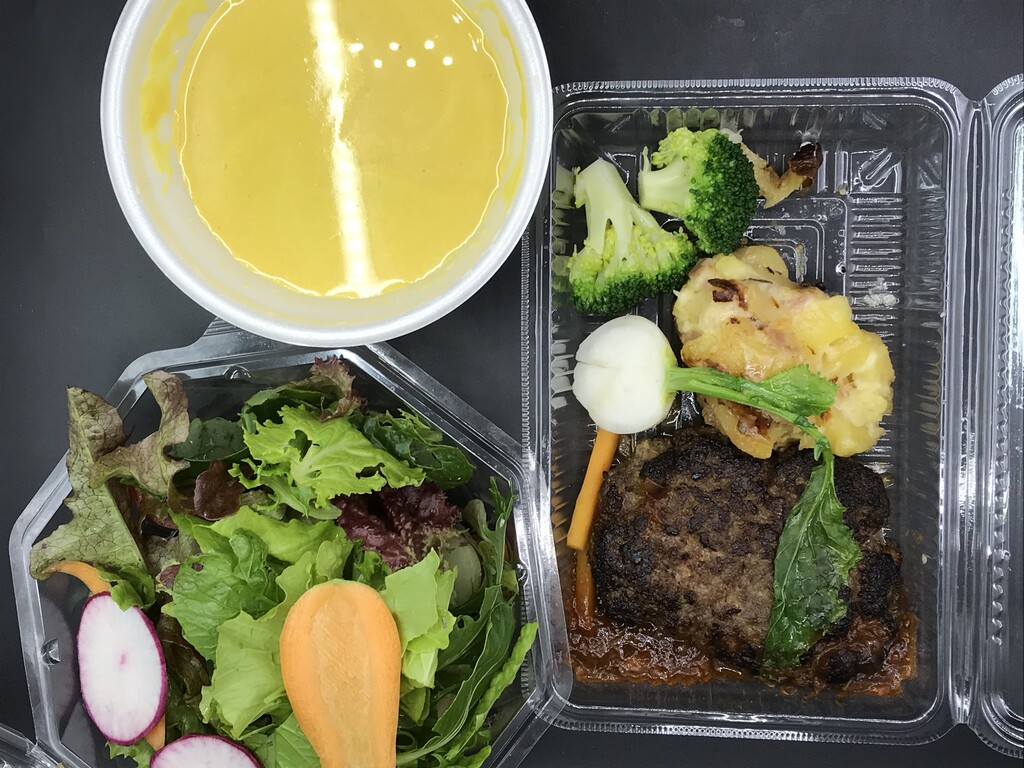 黒毛和牛のハンバーグ、スープ、サラダ、パンのセット♪