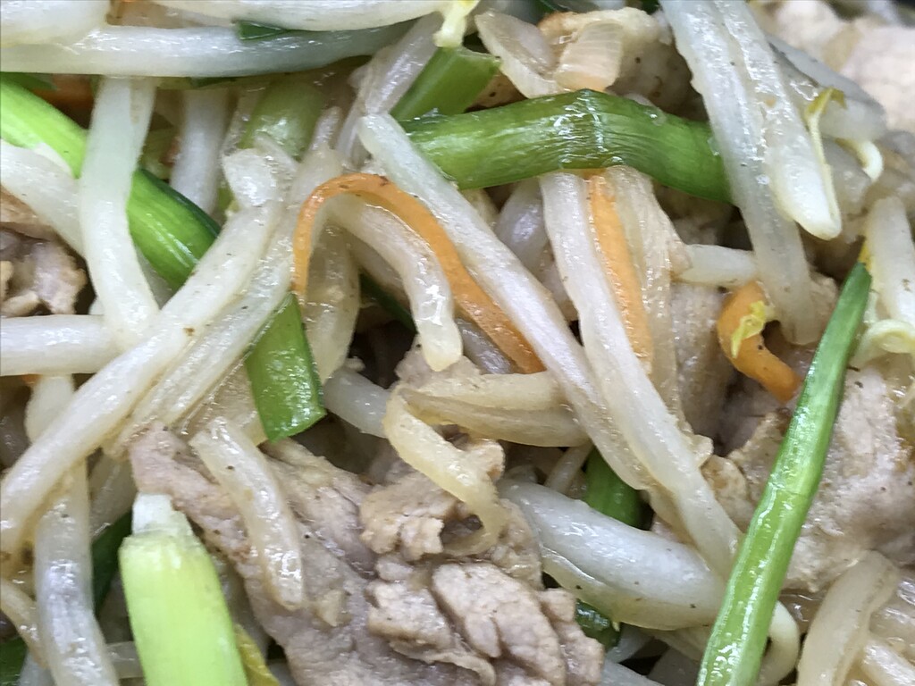 豚バラとニラもやしの炒め物♪