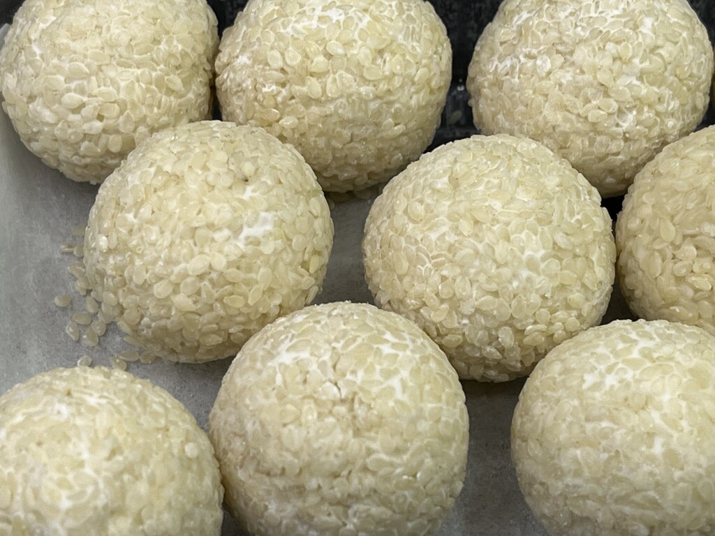 ゴマ団子、あずき餡と黒ゴマ餡の2種10個ずつ20個入り♪
