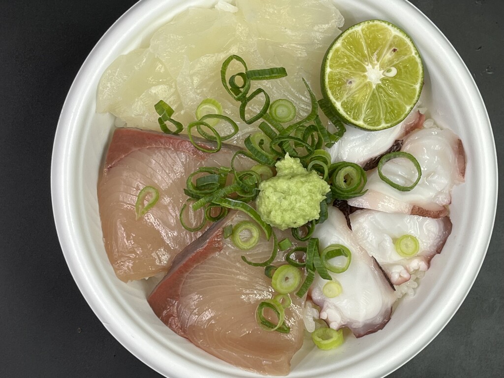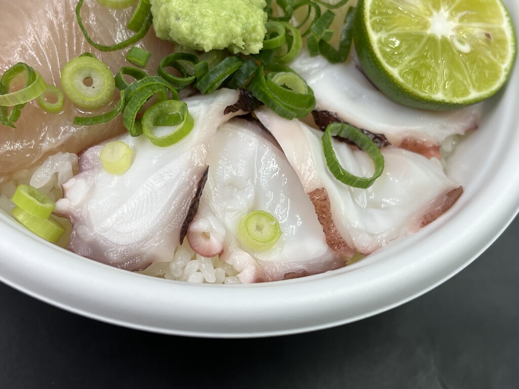 タコが4切れと、本わさび、すだちの海鮮丼♪
