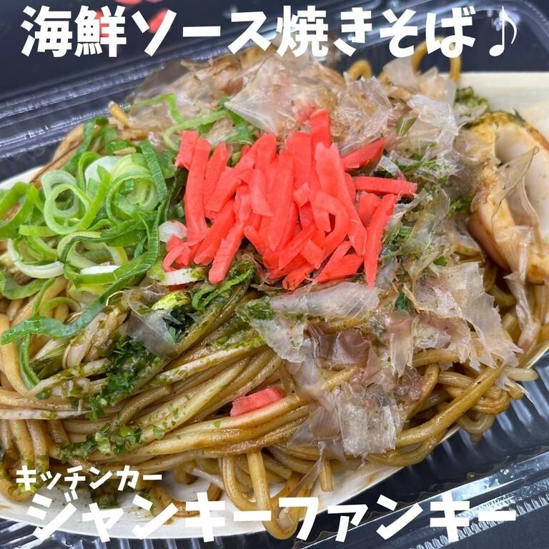 移動販売の海鮮焼きそば屋さん、ジャンキーファンキーさん♪フライパンで一食一食焼き上げた焼きそばが自慢のお店です♪