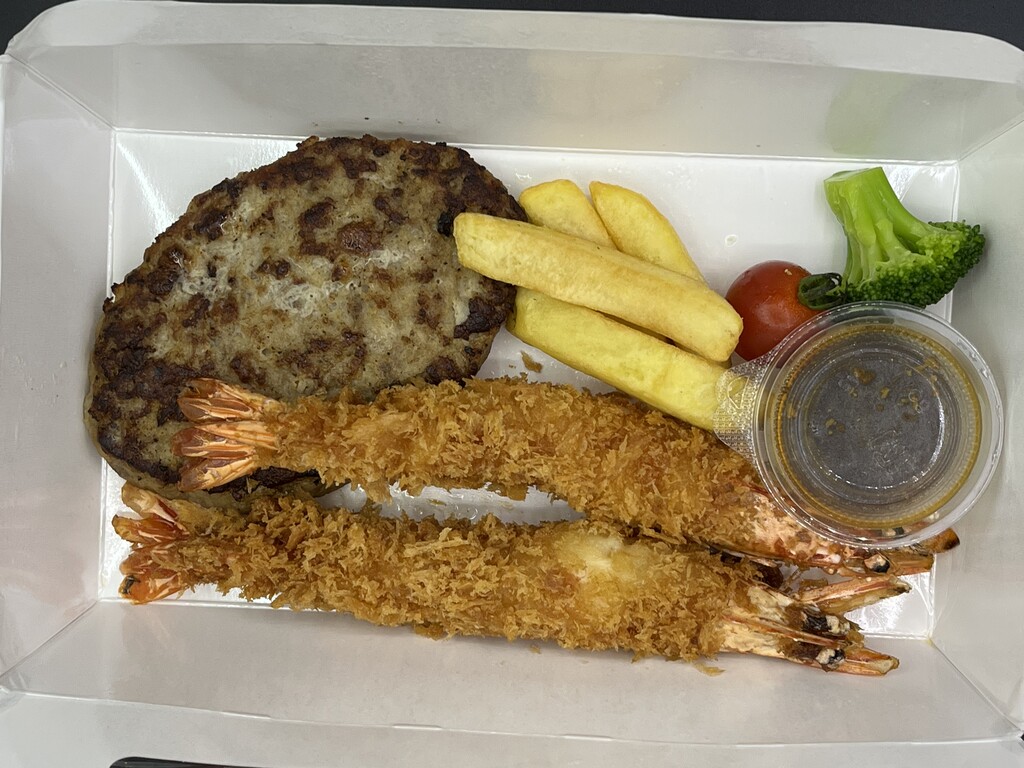 有頭エビフライと、ハンバーグのセット♪